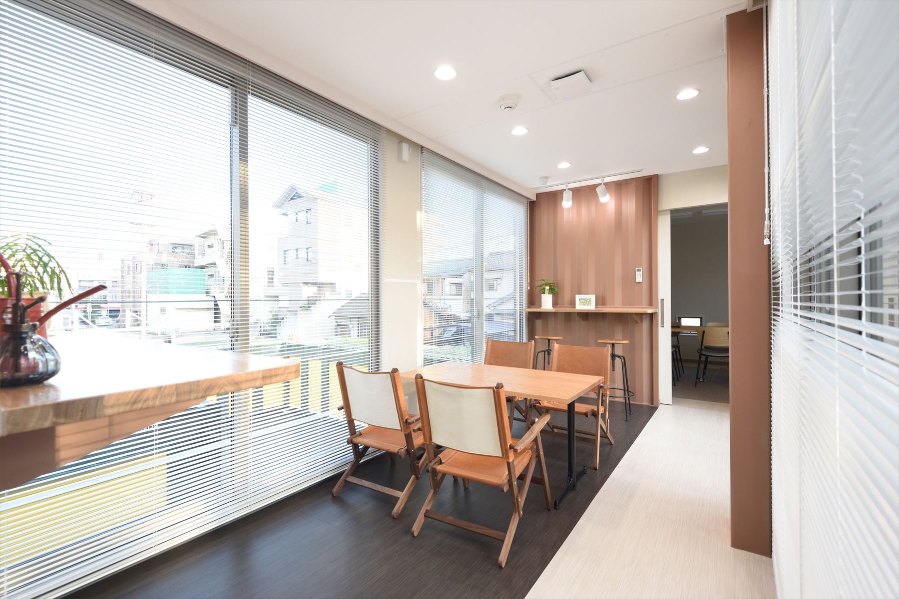 1階のワークスペースには木漏れ日をイメージする光が射し込む小窓を、また2階のミーティングルームには小窓に加えて天窓も設置し、屋内各所に観葉植物を配置することで「光と緑あふれるナチュラルオフィス」をコンセプトにした空間に仕上げました。