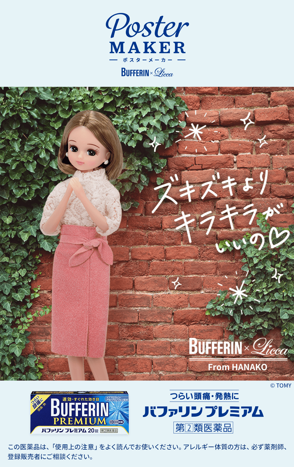リカちゃん、バファリン公式アンバサダーに就任! 就任式に登壇 インタビューも。 「うまくお伝えできるかドキドキですが、精いっぱい頑張ります」。 コラボポスターをつくってアンバサダーLiccaを応援しよう!