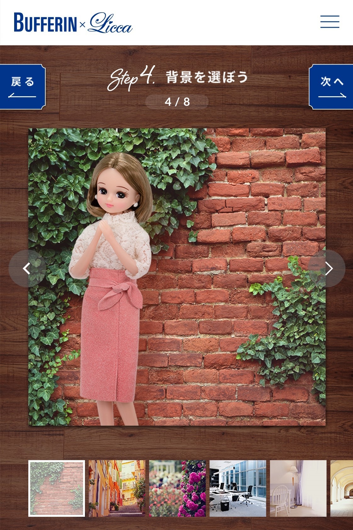本キャンペーンでは、Liccaとバファリンがコラボしたオリジナルポスターがつくれる「ポスターメーカー」で自分好みのポスター画像をつくり、応募いただいた方の中から抽選で「バファリンアンバサダーLicca オリジナルドール」が1,000名様に当たる企画をご用意しました。「ポスターメーカー」では、Liccaの衣装やポーズ、背景、フィルター等を自由に組み合わせて、自分だけのポスターをつくることができます。OL風の大人っぽいコーディネートや季節を先取りした「春夏」らしいカジュアルなファッションのLiccaをオリジナルのポスターのモデルにすることが可能です。