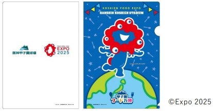 甲子園フード万博当日、会場で「5 クリアファイルプレゼント対象グルメ」に記載の商品を1点購入された方にもれなく、「大阪・関西万博、阪神甲子園球場 コラボクリアファイル」を1つプレゼントします。