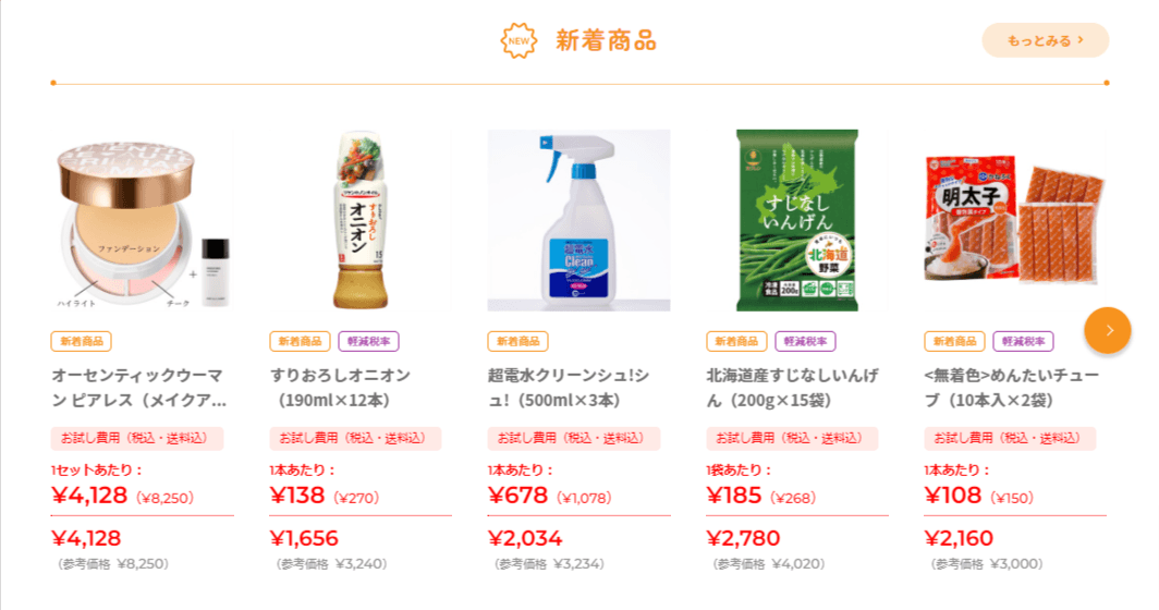 ■会員登録をするだけで、一商品につき一度だけ半額でおためし購入が可能です。