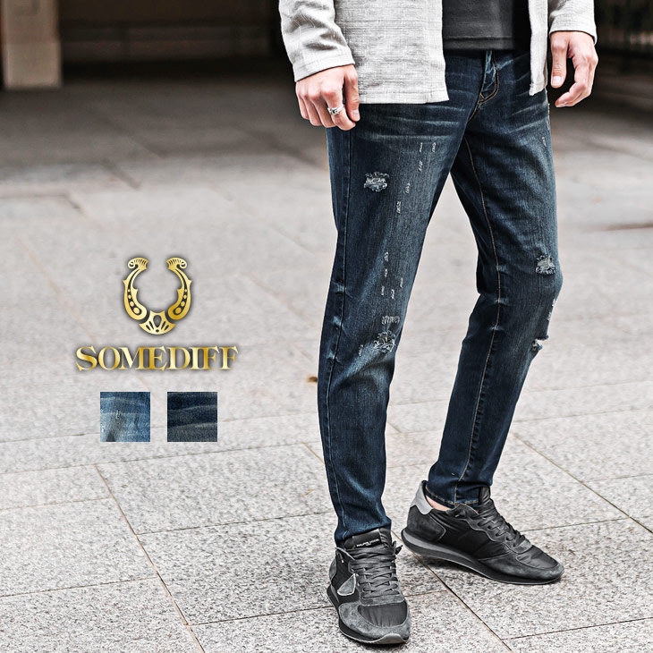 SOMEDIFF/サムディフ スリムテーパードダメージデニム