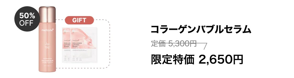 韓国コスメ「medicube(メディキューブ)」より、11種のコラーゲンが含有されたバブルタイプのコラーゲンセラムの新発売!発売記念で最大53%OFF販売へ!