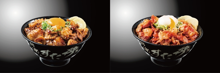 左から『すたみなWホルモン焼肉丼 黒』『すたみなWホルモン焼肉丼 赤』 各¥980(税込)