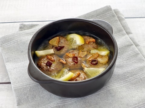 いわしのたたき、長ねぎ、生姜に「鮮度生活 特選丸大豆しょうゆ」を加えて、食べやすく丸めただんごをにんにくたっぷりのオリーブオイルにぽんと入れてアヒージョに仕上げました。しょうゆの風味が、いわしの臭みをけしてうま味豊かな黒アヒージョが楽しめます。