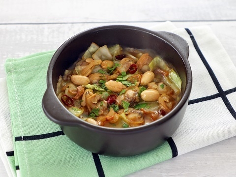 殻付きのあさりのうま味を「鮮度生活 減塩しょうゆ」が引き立て、砕かずそのまま入れた落花生の食感が楽しめる黒アヒージョです。