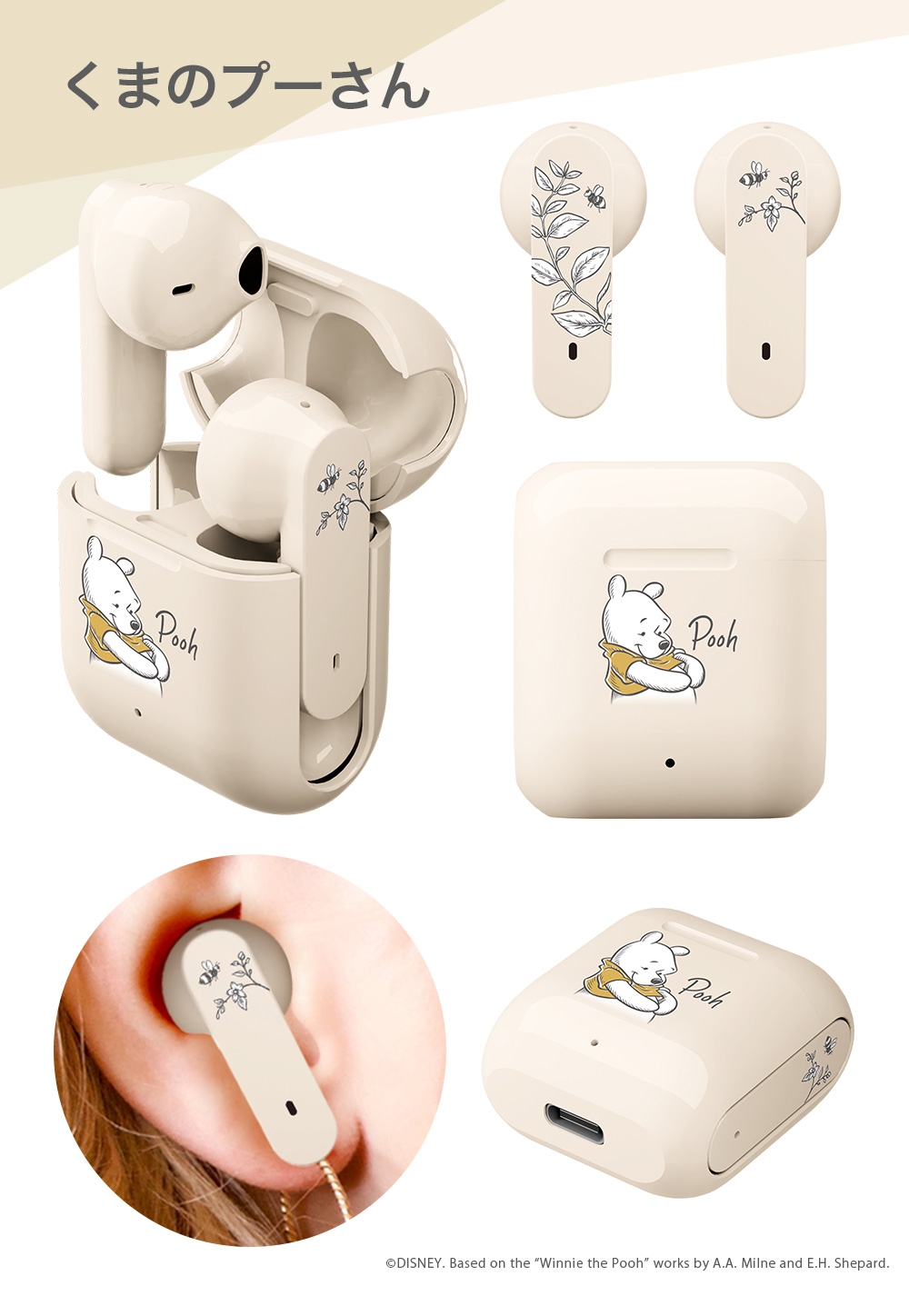かわいいディズニーキャラクターデザインの完全ワイヤレス ステレオイヤホン インナーイヤータイプです。省電力、高速通信のBluetooth® 5.3を搭載しています。イヤホン本体は簡単に着脱でき、密着する違和感や長時間での疲労感を感じにくいインナーイヤータイプです。充電ケースは高さ39mmのコンパクトサイズで、イヤホン本体を収納しても約25gと軽く、持ち運びにも邪魔になりません。充電ケースはイヤホン本体を約2回フル充電できます。