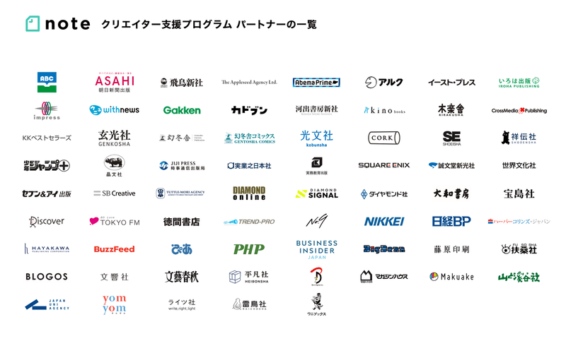 クリエイターが活躍する場を広げるために、noteが出版社やメディア、クリエイターエージェンシーなどのメディアパートナーとともに才能の開花を後押しするプログラムです。