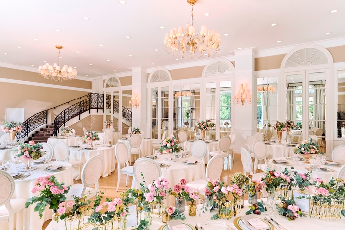 たくさんの窓から自然光が差し込む、アットホームさと華やかさを兼ね備えた邸宅。大人可愛いからナチュラルまで、自由自在に彩ります。ヒロインになった気分で登場できる、階段入場も人気。