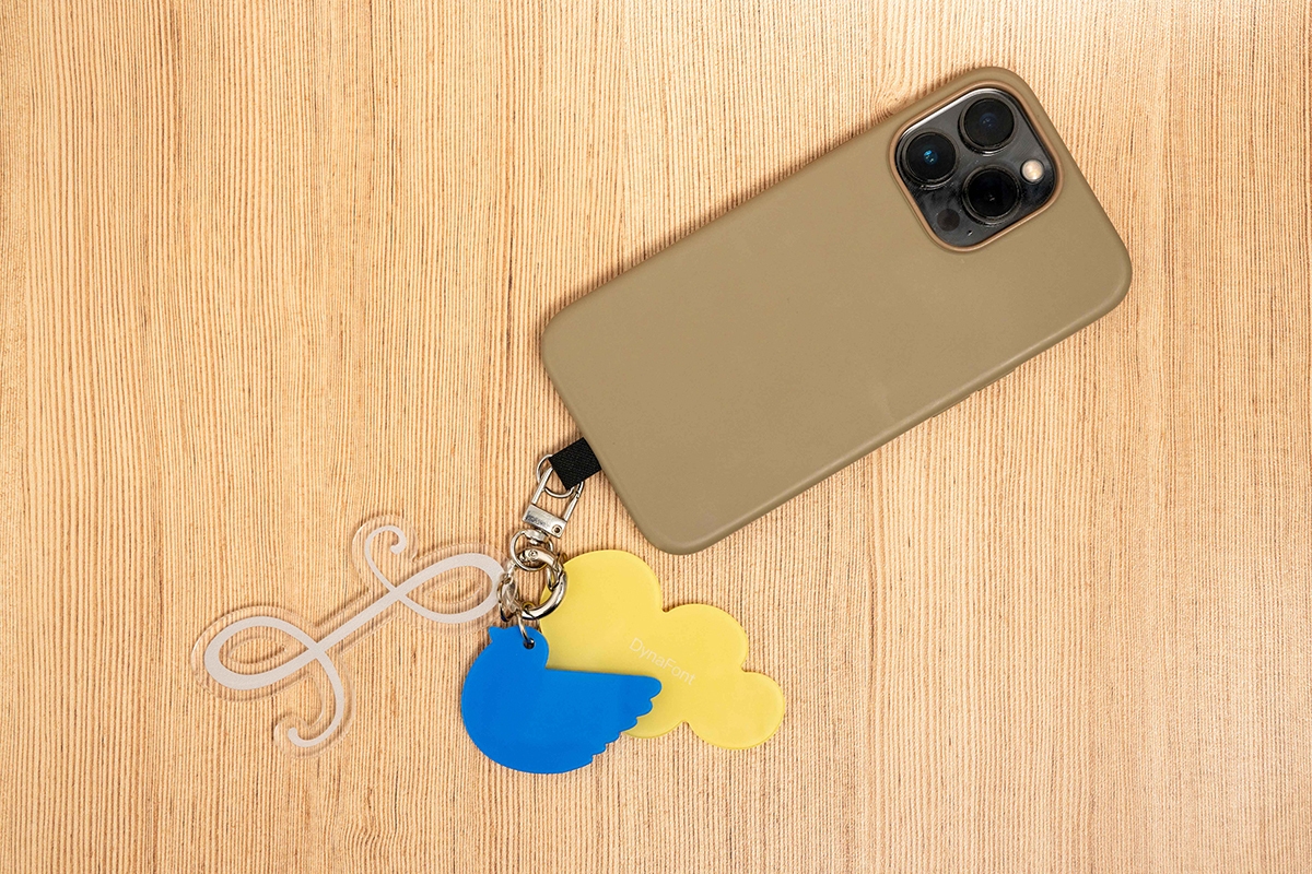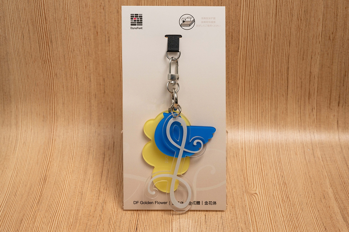 「ダイナフォント金花体キーホルダー」は、2024年7月に中国・上海で開催したダイナコムウェア「文字より新生へ」芸術展のオリジナルグッズとして制作した「文字より新生へキーホルダー」をリデザインした2種類のキーホルダーです。特別な瞬間を祝福する文字「金花体」のビジュアルが特徴のデザインで、アクリルに貼ってある保護フィルムを剥がすことで光沢が出て「金花体」が持つ洗練された華やかさをより深く味わうことができます。スマホケースや鞄などに身に付けることで日常が祝福の文字で広がり、何気ない毎日を美しくかけがえのない時間に変えてくれることでしょう。