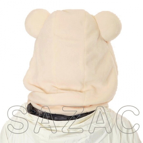 後ろ姿はこんな感じです。THEシンプルですね!普通の白いクマのフード付きネックウォーマーです。なんだか普段使いにも行けそうな気がしてきました…。