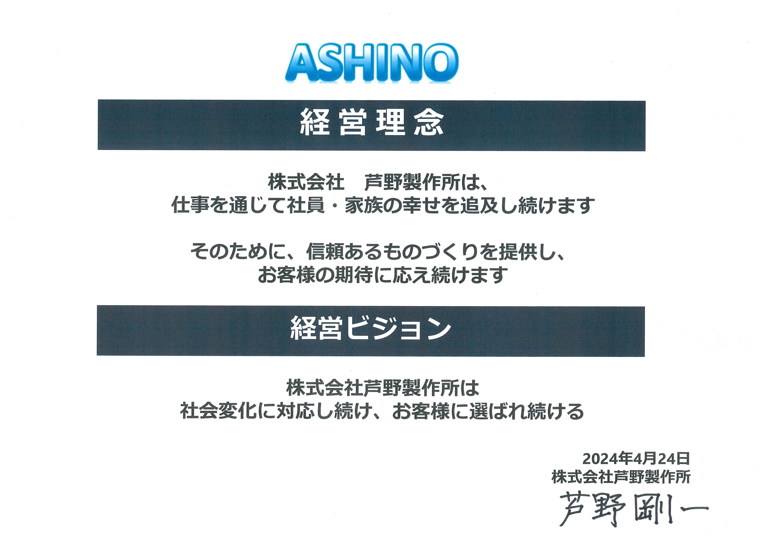 近年、気候変動や人口減少などの社会課題が深刻化する中、企業には持続可能な経営姿勢が強く求められています。株式会社芦野製作所では、ものづくりの現場から品質・環境・労働安全の向上に取り組み、社員一人ひとりが日常的に改善活動を推進しています。今回のESGマーク認証取得は、こうした姿勢を対外的に示すとともに、中小企業としての社会的責任を果たし、信頼される企業としての価値をさらに高めることを目的としています。
