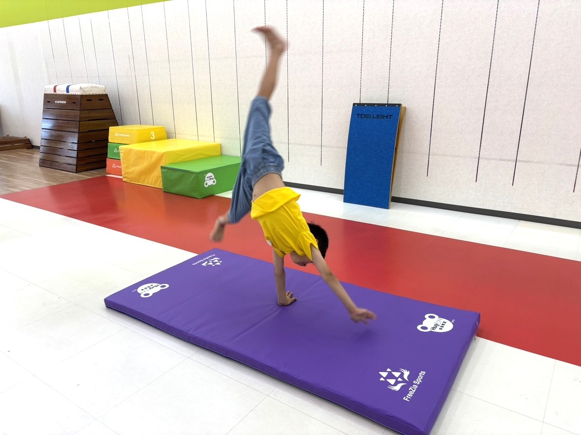 準備運動【15分】+2種目指導(マット・とび箱・鉄棒から2種目)【20分+20分】=合計55分のレッスンとなります。