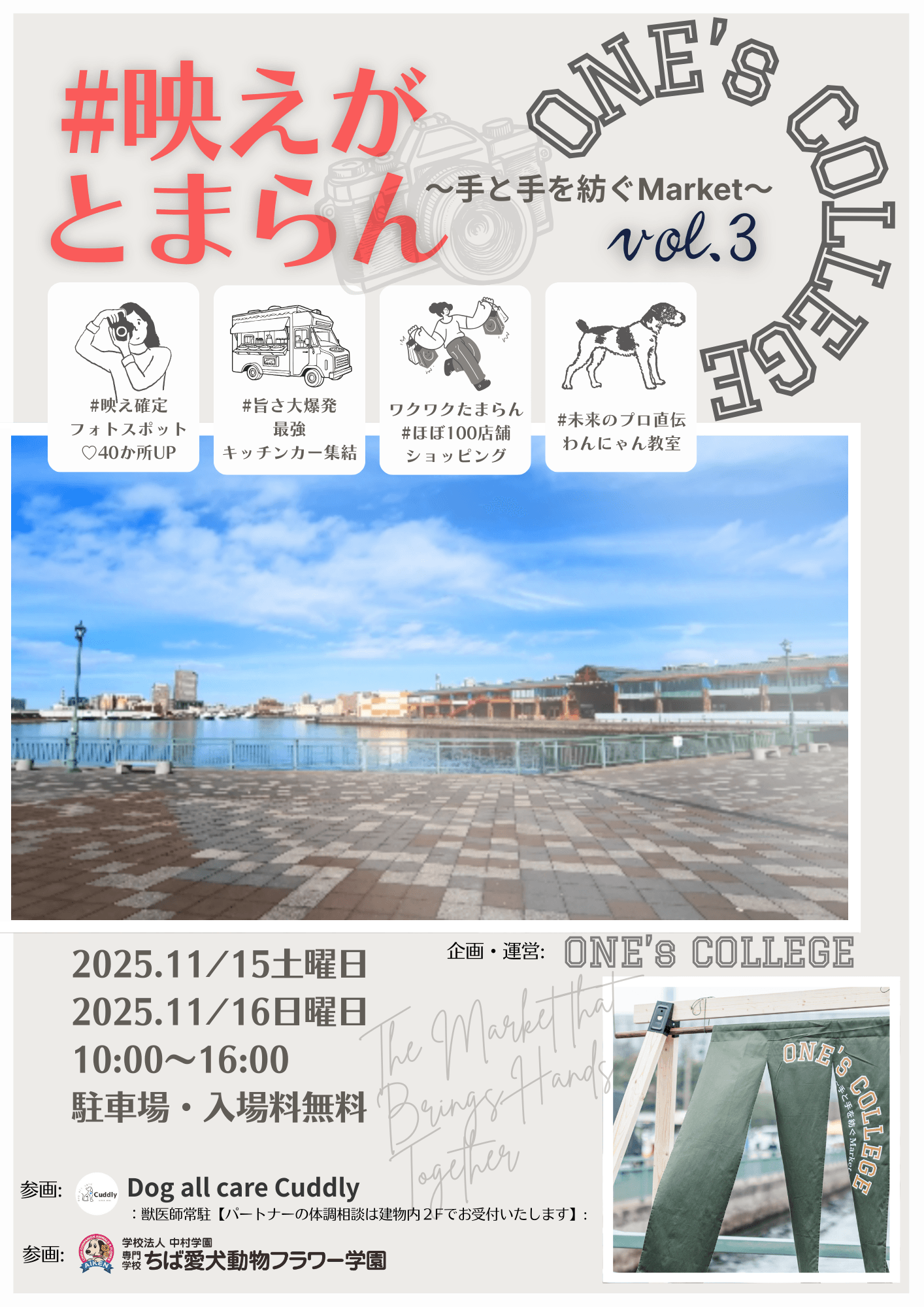 2025年11月15日(土)・16日(日)、千葉市「フェスティバルウォーク蘇我」にて、ONE's COLLEGEが主催するパートナーと人、クリエイターをつなぐ交流型イベント「ONE's COLLEGE Vol.3 ~手と手を紡ぐ Market~」を開催いたします。