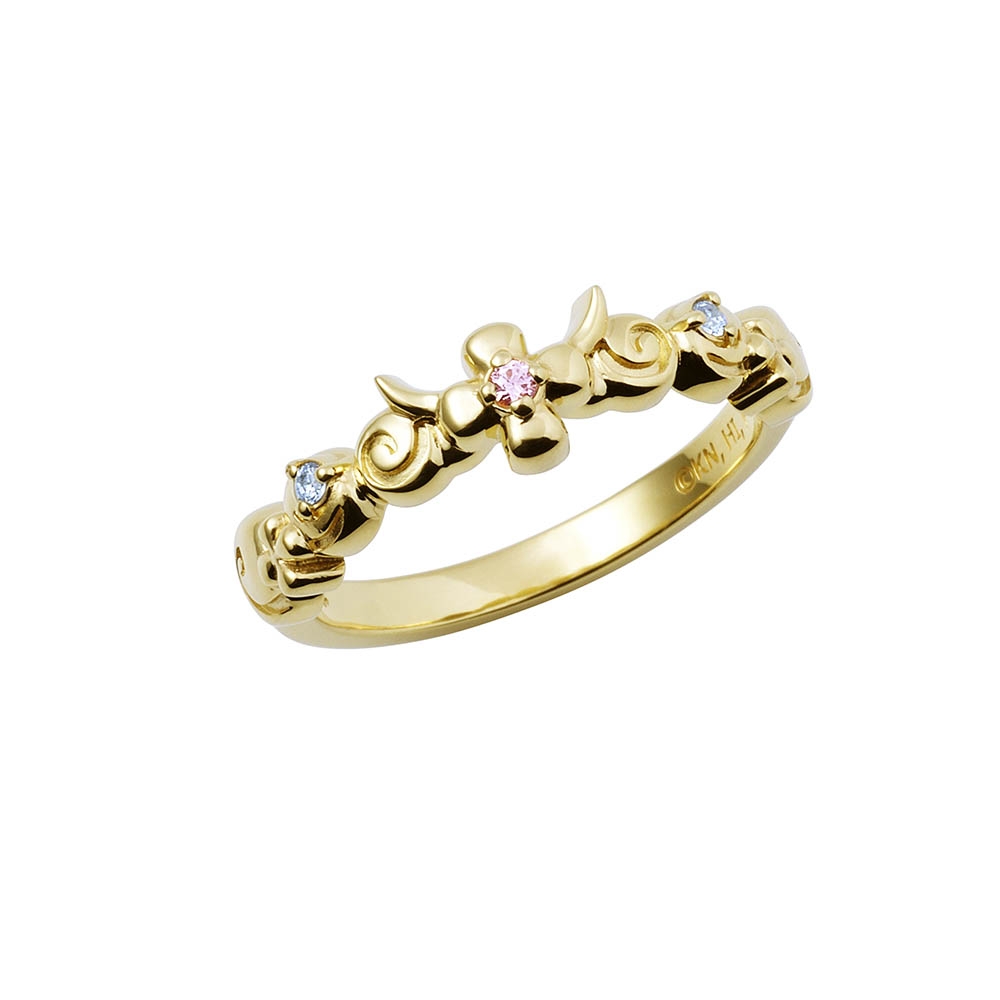 ニアの髪形をイメージしたイエローゴールドカラーのデザインに、イメージカラーストーンをセット。