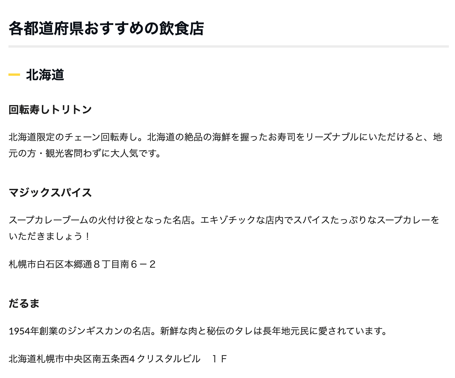 各都道府県おすすめの飲食店も2~3つほど紹介しており、行った先でも迷うことはありません。地元のソウルフードから郷土料理まで、絶対にハズさないお店だけを掲載しています。
