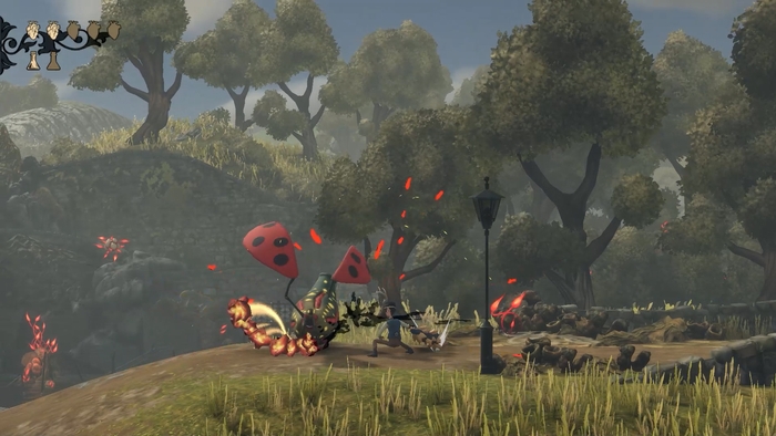 本作は、カナダのモントリオールに新しく設立した「Studio Cut to Bits」のデビュー作です。2D横スクロールアクションに3Dレイヤーの奥行きを加えた2.5Dメトロイドヴァニアとなっております。主人公は「ヴァイル」と呼ばれる謎の存在に蹂躙された奇妙な街「レイニーブルック」を舞台に、「ヴァイル」を倒し、力を吸収して街の住人を救い、行方不明になった親友エラを探す冒険に出かけます。