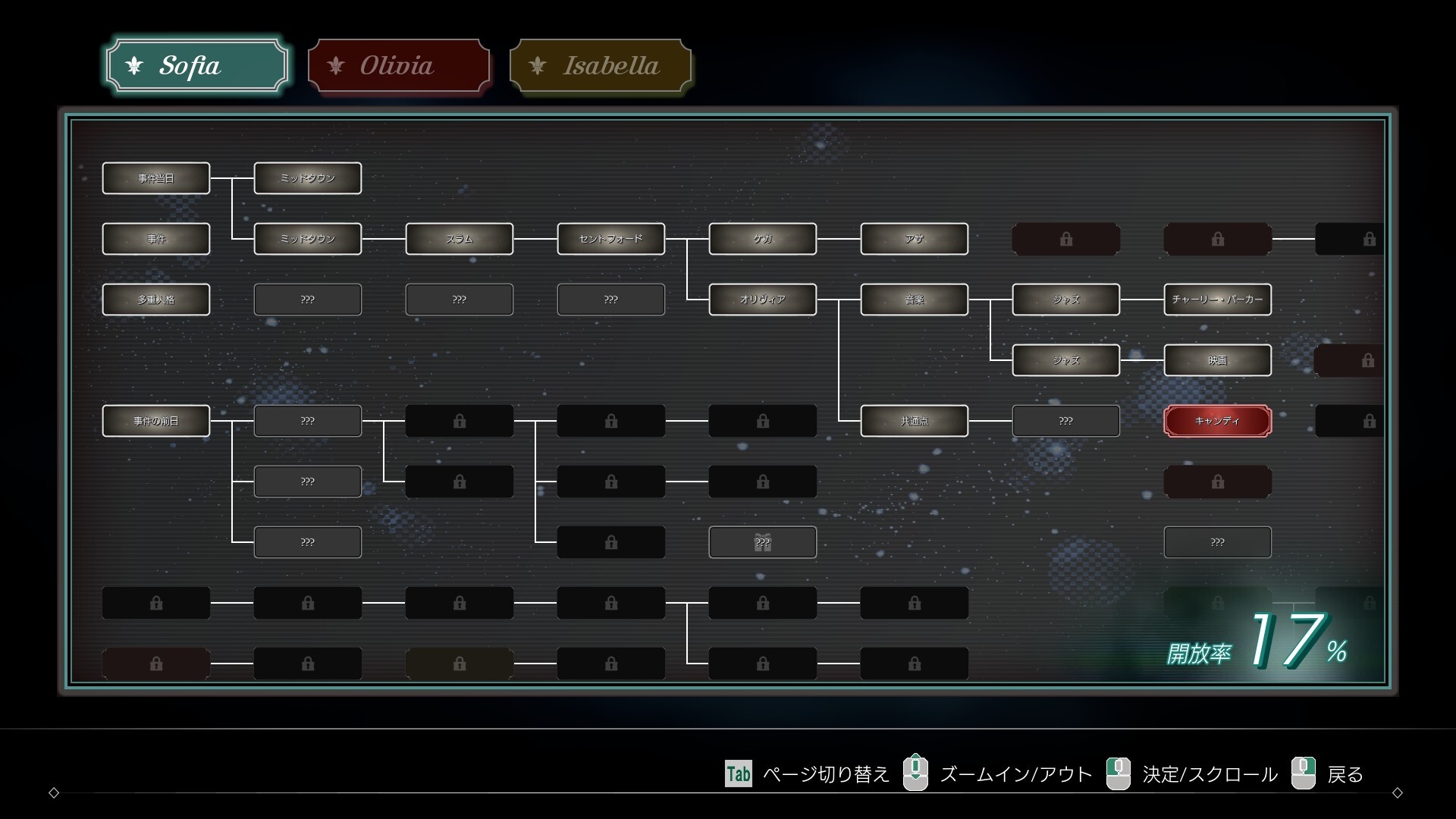 本作の特徴は、フリーワードの入力によって次に投げかける質問を探り当てる検索システム。プレイヤーの選択が、真相の解明はもちろん、多重人格の主人公・ソフィアの行く末に大きく影響します。
