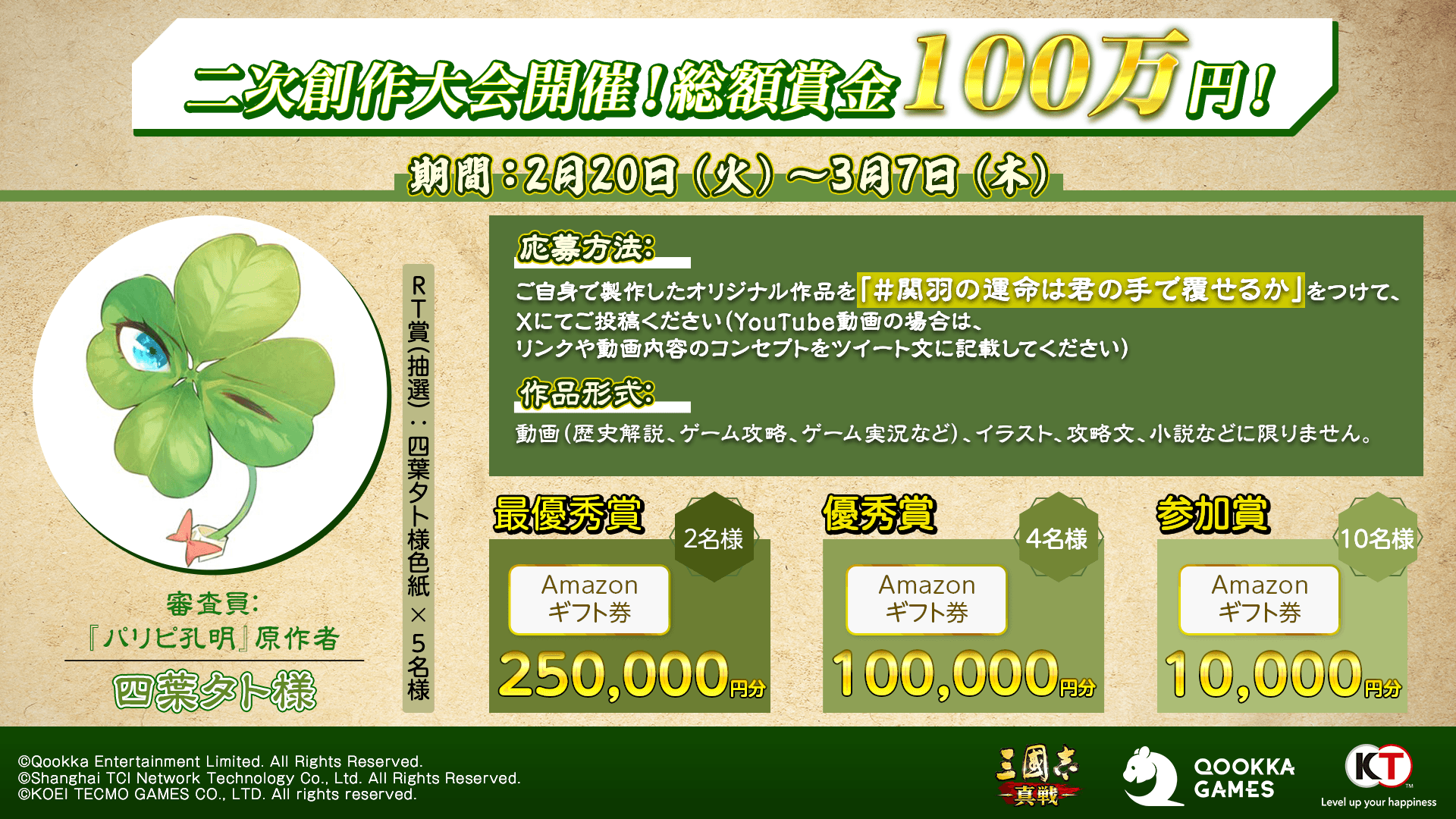 シナリオ公開を記念して、公式Xでキャンペーンを開催!関羽ファンなら誰でも楽しめるこのキャンペーンに参加し、結果をXで投稿すると、黒毛和牛セット、Amazonギフトカードなどのプレゼントをもらえるチャンス!