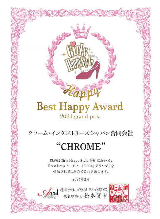2024年3月2日(土)(テレビ埼玉で放送 深夜25:00~)にて放送の『Girls Happy Style(ハピスタTV)』で、CHROME バックパック、Cohesive 2.0 とVolcan Plusが紹介され、出演タレントの皆様から大変高い評価をいただき、「ベストオブザイヤー2024」グランプリを受賞しました。