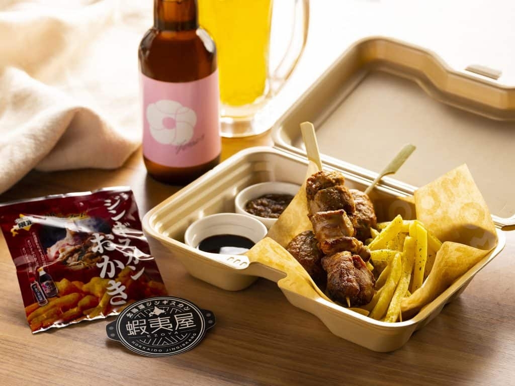 すすきので生まれたクラフトビール 「すすきのえーる」を用意します。これは、コロナ禍で影響を受けているすすきのの人々や、街を楽しむすべての人々にエールを送りたい、という想いが込められたクラフトビールです。おつまみには、すすきのに店を構えるジンギスカン店「蝦夷屋(えぞや)」の、タレ付きのラム肉を揚げた「ジンギスカンザンギ」や、ジンギスカンのたれ付きのフライドポテトなどを用意します。蝦夷屋のお肉は、冷蔵庫で寝かせて臭みをとり、手で丁寧に下処理をしているので、臭みが少なくやわらかく食べやすいのが特徴。さっぱりとしたすすきのえーるに合うよう開発したこのおつまみは、当イベントに参加した方限定で楽しめます。