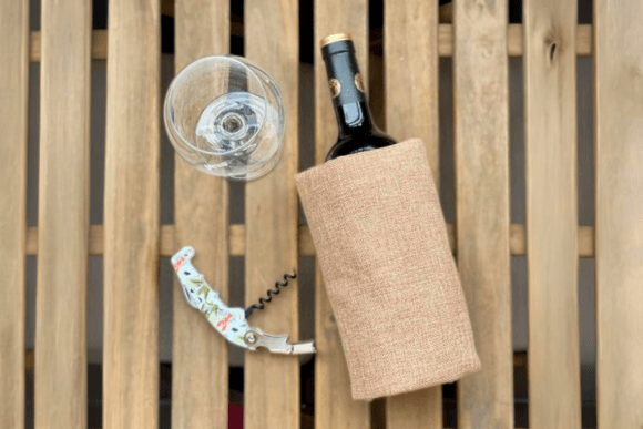 ワインボトルクーラーにはエコ素材として知られるコルクとジュートを使用しています。どちらもワインと相性の良いデザインで、見た目からもワインを楽しめます。