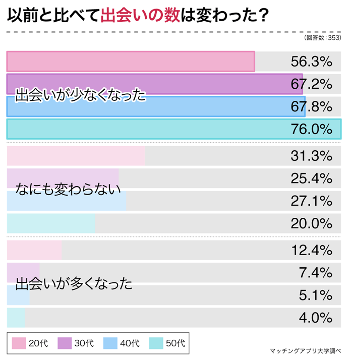 20代でも半数以上が「以前より出会いが少なくなった」と回答