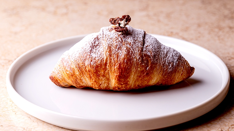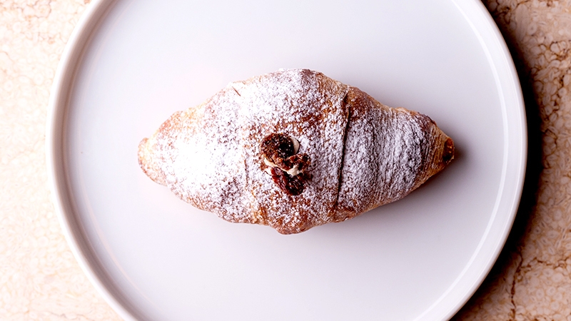 クリスマスの伝統的な焼き菓子「シュトーレン」をモチーフにした、新しいクロッシュが登場!バターを贅沢に使用したクロワッサン生地の中には、ラムレーズンとナッツたっぷりのクリームが。ほのかなシナモンの香りとクリームチーズの爽やかな酸味も感じられる、味わい深いクロッシュです。サクサクのクロワッサン生地とふわふわのクリーム、ナッツのカリッと感…、それぞれの食感の妙も楽しめます。