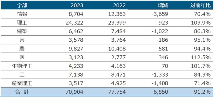 ●文系学部の志願者数は前年比102.4%に増加、理系学部は前年比91.2%に減少した