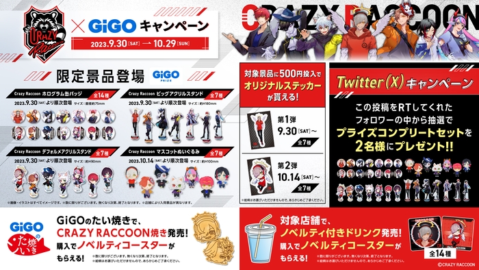 株式会社GENDA GiGO Entertainment(本社:東京都港区 代表取締役社長:二宮 一浩 以下当社)は2023年9月30日(土)より、GiGOグループのお店におきまして、プロゲーミングチーム『Crazy Raccoon』(クレイジーラクーン)とコラボレーションした当社限定のキャンペーンを開催いたします。