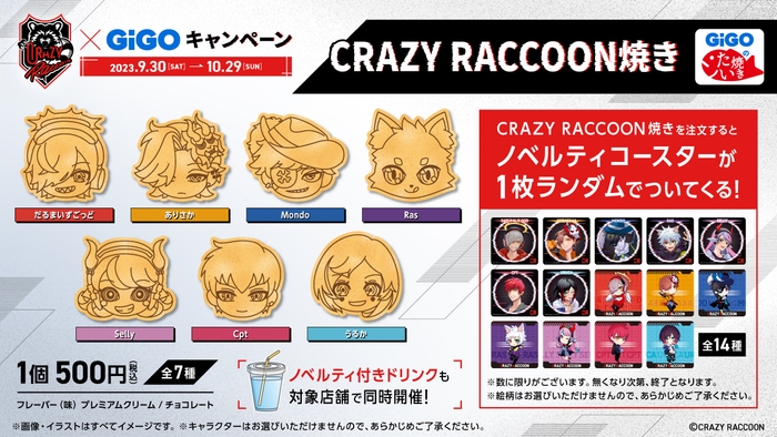 GiGOのたい焼きにてCrazy Raccoonのメンバーをモチーフにした「CRAZY RACCOON焼き」を販売いたします。
