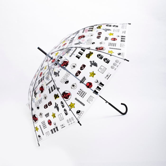 マリオなどのキャラクターをはじめ、キノコやスターなどアイコニックなモチーフを散りばめた柄。クールな印象の中に、こちらを見ているテレサや転んでいるクリボーなども愛くるしいアイテムです。