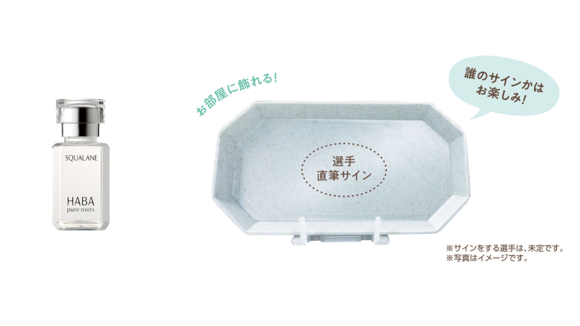 ハーバー高品位「スクワラン」30mLをお買い上げの方へ抽選で100名様に、ファイターズ選手の「直筆サイン入りトレー&飾れるスタンド」をプレゼント。