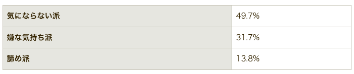 気にならない人と嫌な気持ちを抱く人とどちらが多いのか、カテゴライズして比較してみました。