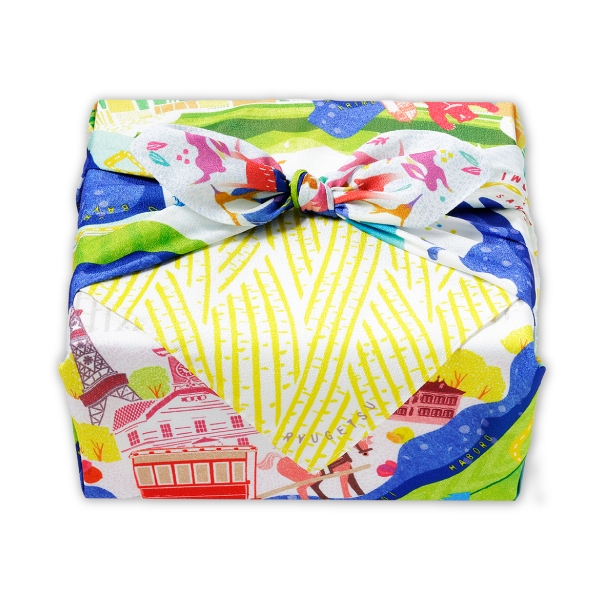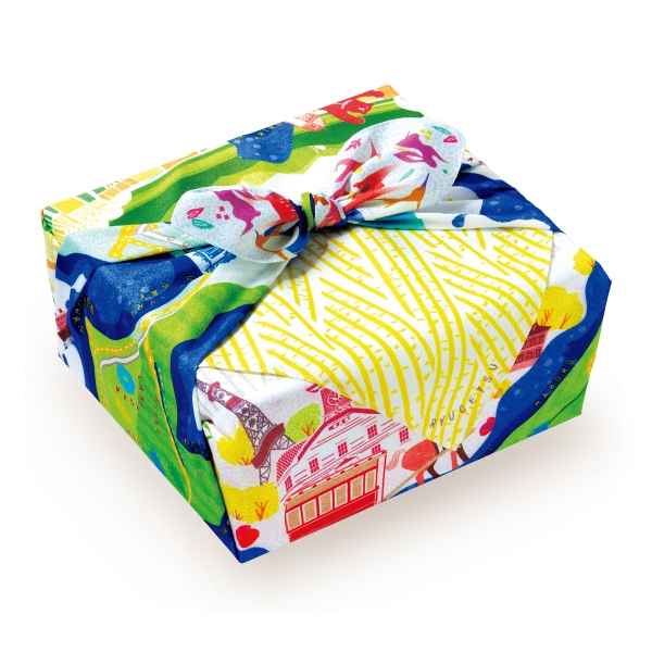 お子様からご年配の方まで、囲んで楽しい、バラエティ豊かな一折りとなりました。「夏の北海道めぐり」ふろしきでお包みして、全国のみなさまへお届けします。