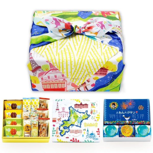 ふろしきもお菓子も、夏の北海道らしさいっぱいにお届けします。毎年完売する人気の夏限定ギフトですので、どうぞお早めにお求めくださいませ。