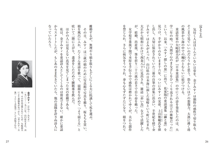 また、それぞれの詩の後には、詩歌を愛する著者ならではの視点で思い入れたっぷりに語られる「ひとことエッセイ」を掲載。人生の折り折りで生きる支えとなってきた詩への敬意が込められた、ノスタルジックな共感を呼ぶ味わい深い内容となっています。