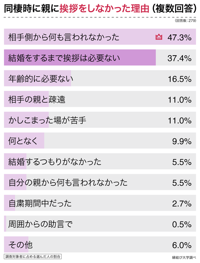 同棲前に挨拶をしているカップルは半数未満