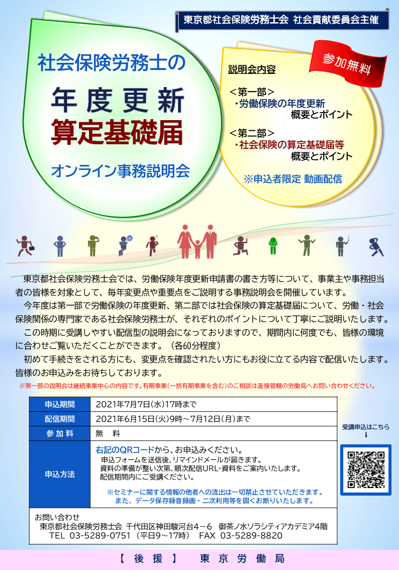 “東京労働局後援”社会保険労務士の労働保険年度更新・ 算定基礎届オンライン事務説明会を開催(無料)