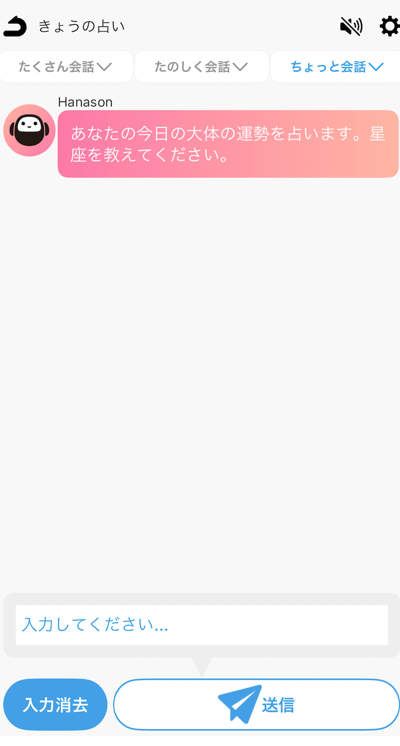 また『HANASON(ハナソン)』は音声入力をメインとしており(※文字入力での会話も可能)移動中でも、環境に影響されずに会話を楽しむことが可能です。会話の内容は、日々気軽に利用できる“きょうの占い”などのテーマから、物語の創作など生成AIが得意とするクリエイティブな成果物を作り出すテーマなどを用意しました。
