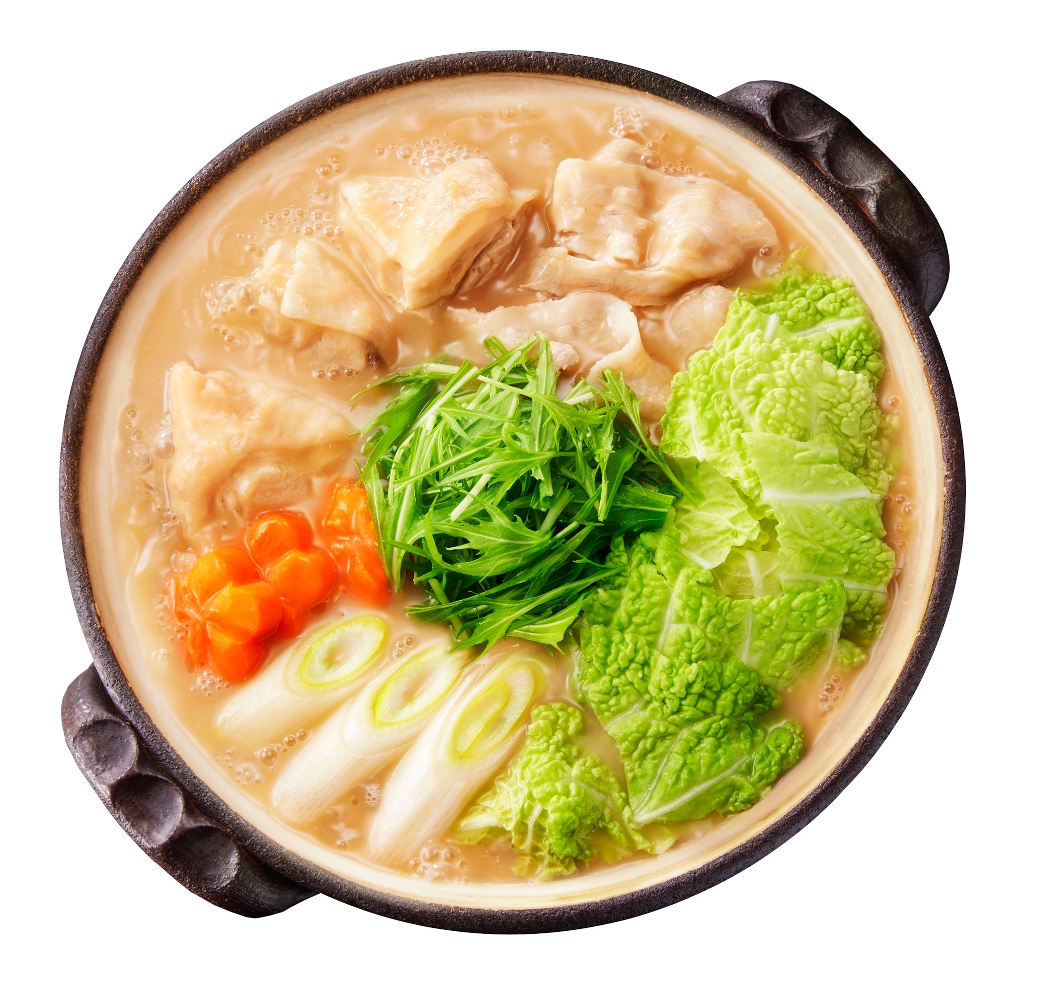 天下一品は、1971年に京都・北白川で屋台からスタートし、鶏がらをじっくり炊き出し、十数種類の野菜などを用いた旨みたっぷりの「こってりスープ」が人気のラーメン店です。『名店監修鍋スープ 天下一品 京都鶏白湯味』は、鶏やタマネギなどの野菜の旨みにニンニクのコクを効かせ、隠し味に味噌を加えることで、濃厚な味わいに仕上げたストレートタイプの鍋スープです。豚バラ肉、キャベツ、長ネギ、水菜などの具材によく絡み、濃厚な旨みが楽しめます。また、牛もつを用いれば、「こってり感」がさらにアップします。鍋あとは、下茹でした中華麺とスープを合わせ、刻みネギとおろしニンニクをトッピングして「鶏白湯ラーメン」、またはご飯ととろけるチーズを煮込み黒こしょうで仕上げる「こってりチーズリゾット」に。その日の気分で選べる逸品です。