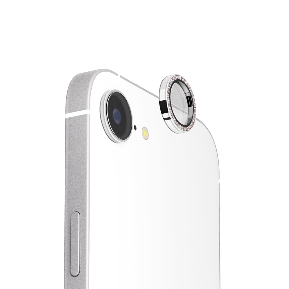 華やかで可愛いラインストーンで装飾されたiPhone 16e対応カメラレンズプロテクターです。
