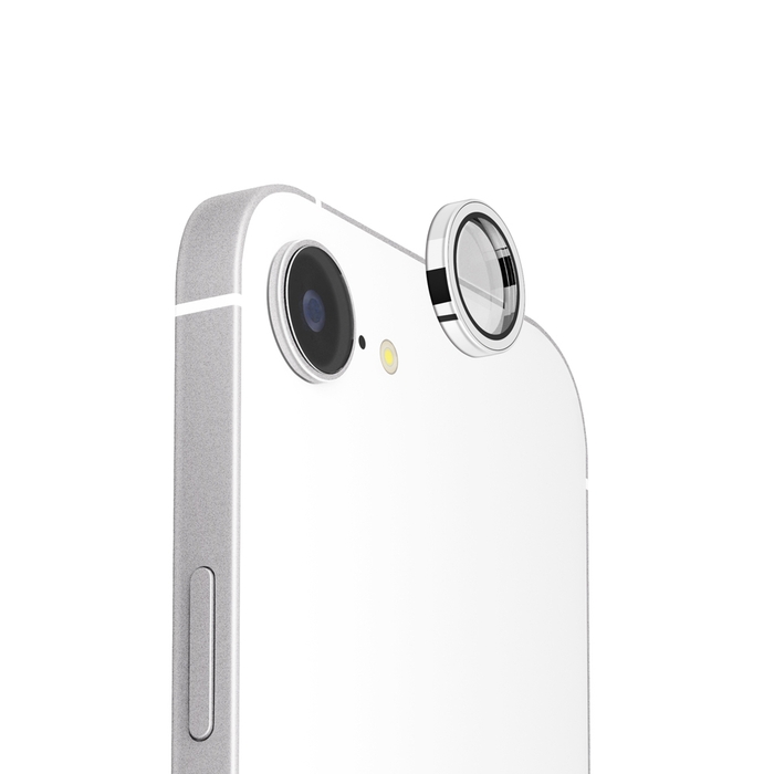 スタイリッシュなアルミタイプのiPhone 16e対応カメラレンズプロテクターです。透過率92%・表面硬度10Hのガラスと軽量なアルミニウムが一体成形されており、端末本体のカメラレンズをキズ付けず、美しくカメラレンズを守ります。着脱キット付きで貼り付け・取り外しも簡単です。貼り付け時に便利なクリーニングクロス・ほこり取りシール付き。