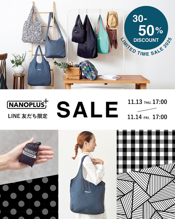 累計販売16万個を突破した手のひらサイズのエコバッグ「NANOPLUS」を展開する株式会社Cycle(代表:飯田 航、本社:東京都豊島区、以下Cycle)は、2025年の年間売上が好調なことを受け、お客様への感謝を込めて、お買い求めいただいた先着200名様に「オリジナルポーチ&カラビナセット」、6,000円以上ご購入の方には「折りたたみボトル(PocketBottle)」をプレゼントする感謝セールを2025年11月13日(木)17:00 ~ 11月14日(金)17:00の24時間限定で開催いたします。LINEのNANOPLUS公式アカウントを友だち追加いただいている方を対象としたセールで、人気商品も最大半額でお買い求めいただけます。