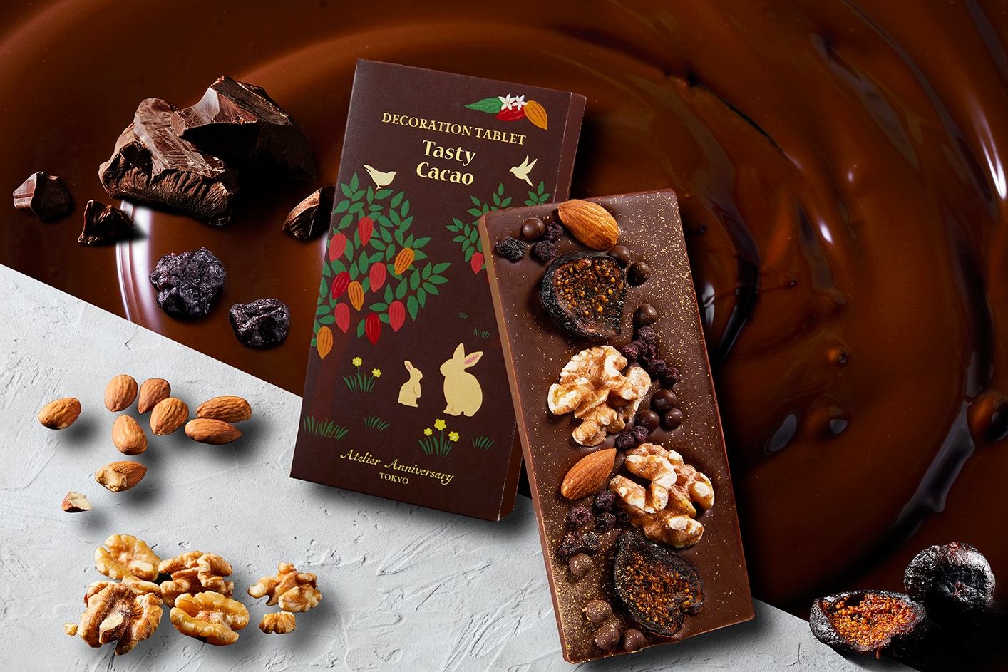 2021年の新作「デコレーションタブレット」全3種(リッチストロベリー・テイスティカカオ・プレミアムピスタチオ)は、アトリエ アニバーサリーらしい華やかな見た目と、一口一口異なる食感や風味が楽しい、華やかなタブレットチョコレートに仕上がりました。身近なご友人が立寄った際はナイフで食べやすく一口サイズにカットして、リモートワークのブレイクタイムには好みの大きさに手で割ってカジュアルにも召し上がれます。