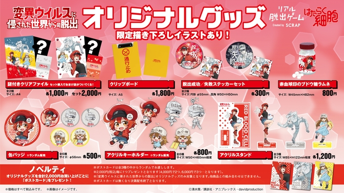 イベント描き下ろしイラストも使用した、オリジナルグッズのラインナップを発表! リアル脱出ゲーム×はたらく細胞『変異ウイルスに侵された世界からの脱出』