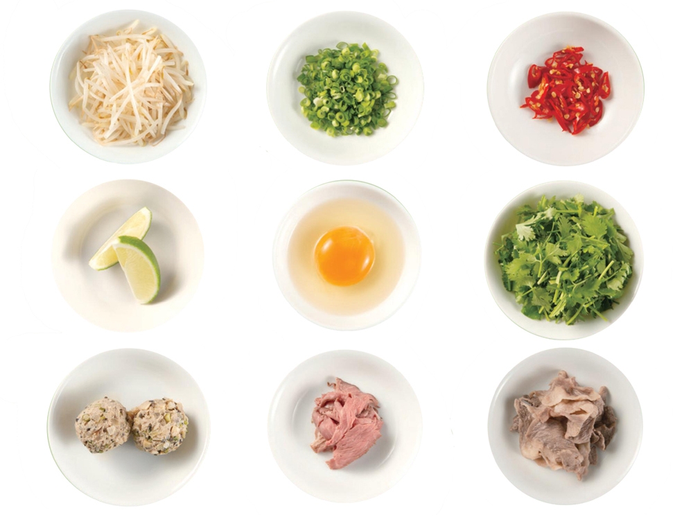 酸味から辛味、お肉まで9種類をご用意しました。お好きなトッピングを追加して、オリジナルのフォーをお楽しみください。