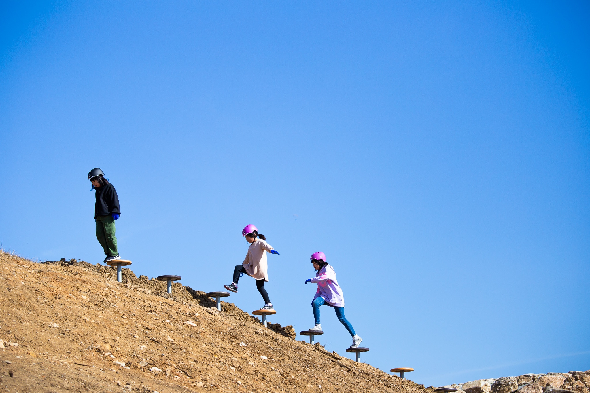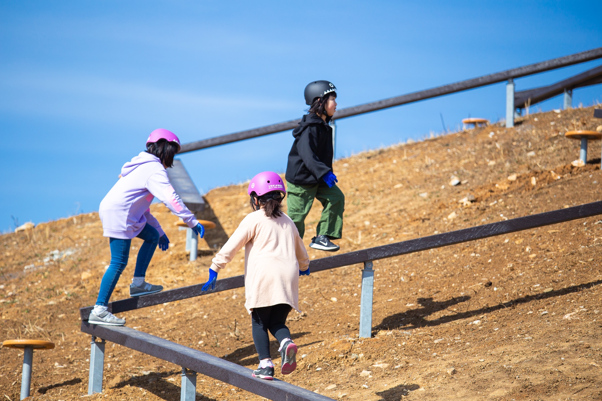 斜面、草原、石灰岩を登って降りる。ここでしか体験できないドキドキワクワクの新感覚アスレチックをお楽しみください。