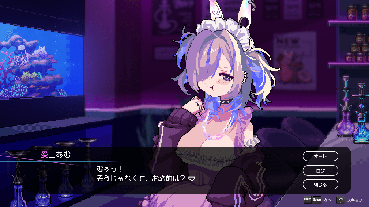 『Hookah Haze』は、株式会社アニプレックス(本社:東京都千代田区 代表取締役 岩上敦宏 以下アニプレックス)が販売、株式会社アクワイア(本社:東京都千代田区 代表取締役 遠藤琢磨 以下アクワイア)が企画・開発を手掛けるSteam🄬・Nintendo Switch™向けゲームです。プレイヤーは主人公・『炭木トオル』としてシーシャ屋を経営することになります。そこで、3人の女性と出会い、シーシャを提供する中で彼女たちの本心に触れていきます。