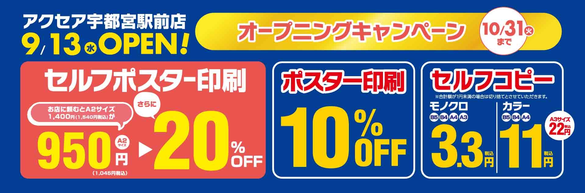 9月13日のオープンを記念して、アクセア 宇都宮駅前店をお得に使えるキャンペーンを実施いたします。